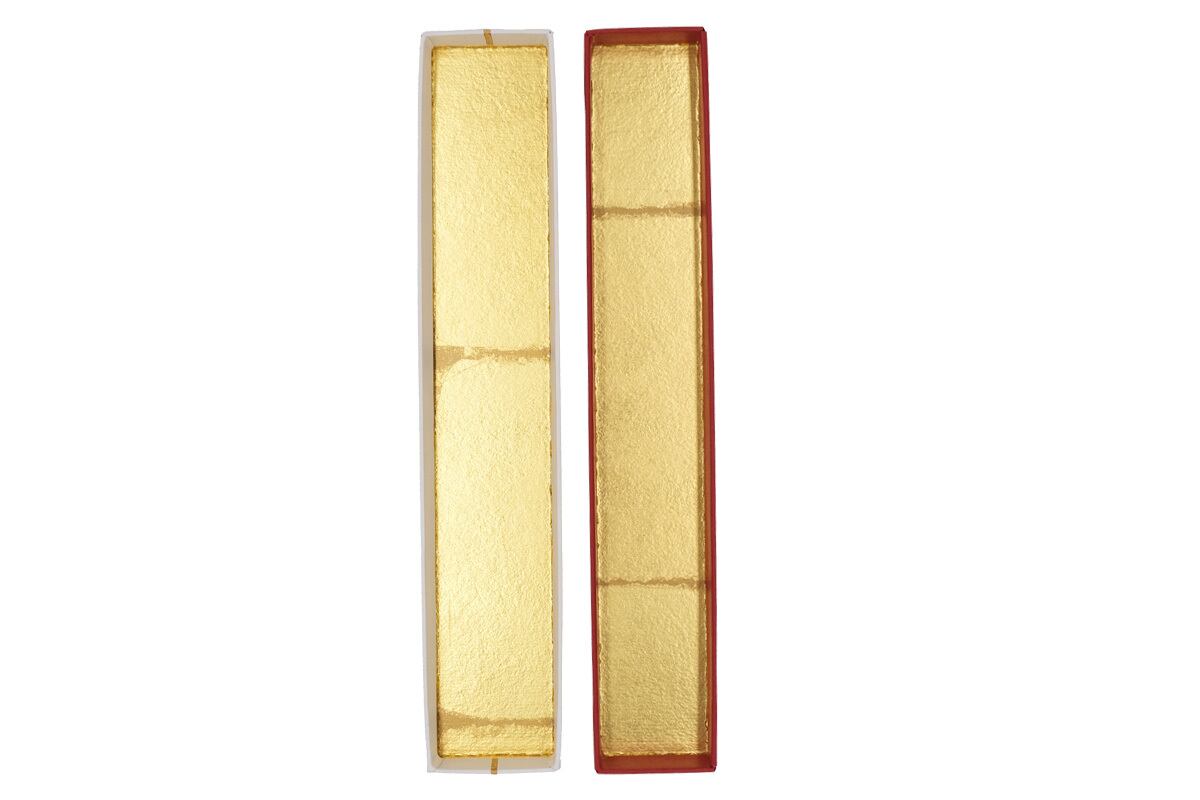 REKISEISHA(歴清社)Ver.は、折り鶴再生紙に「ORIZURU」マークのみを印刷したミニマルなFANOをベースに、歴清社の職人が一点ずつ手描きで線を施した特別仕様。カラーは、気品ある「ゴールド」と、複数の箔を組み合わせた「ミックス」の2種をご用意しました。歴清社が誇る独自の箔加工技術により、金属箔は限りなく変色を抑えられ、時を経ても美しい輝きを保ちます。