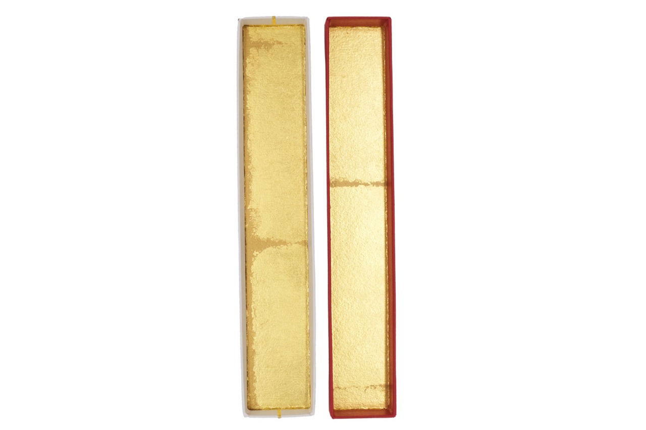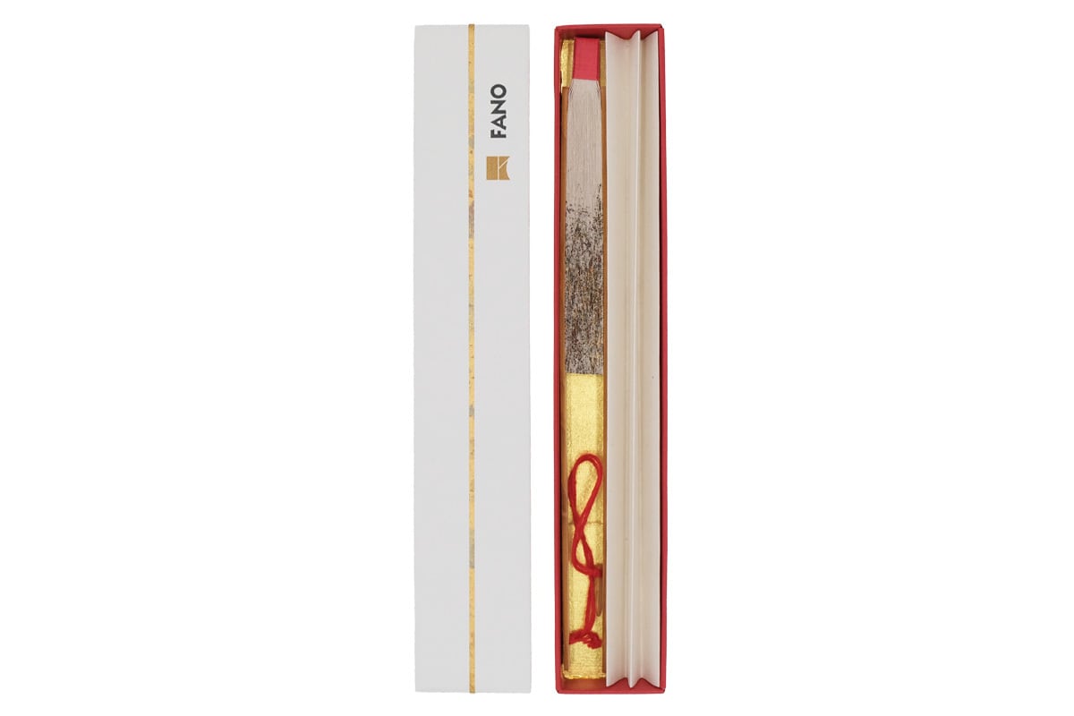 REKISEISHA(歴清社)Ver.は、折り鶴再生紙に「ORIZURU」マークのみを印刷したミニマルなFANOをベースに、歴清社の職人が一点ずつ手描きで線を施した特別仕様。カラーは、気品ある「ゴールド」と、複数の箔を組み合わせた「ミックス」の2種をご用意しました。歴清社が誇る独自の箔加工技術により、金属箔は限りなく変色を抑えられ、時を経ても美しい輝きを保ちます。